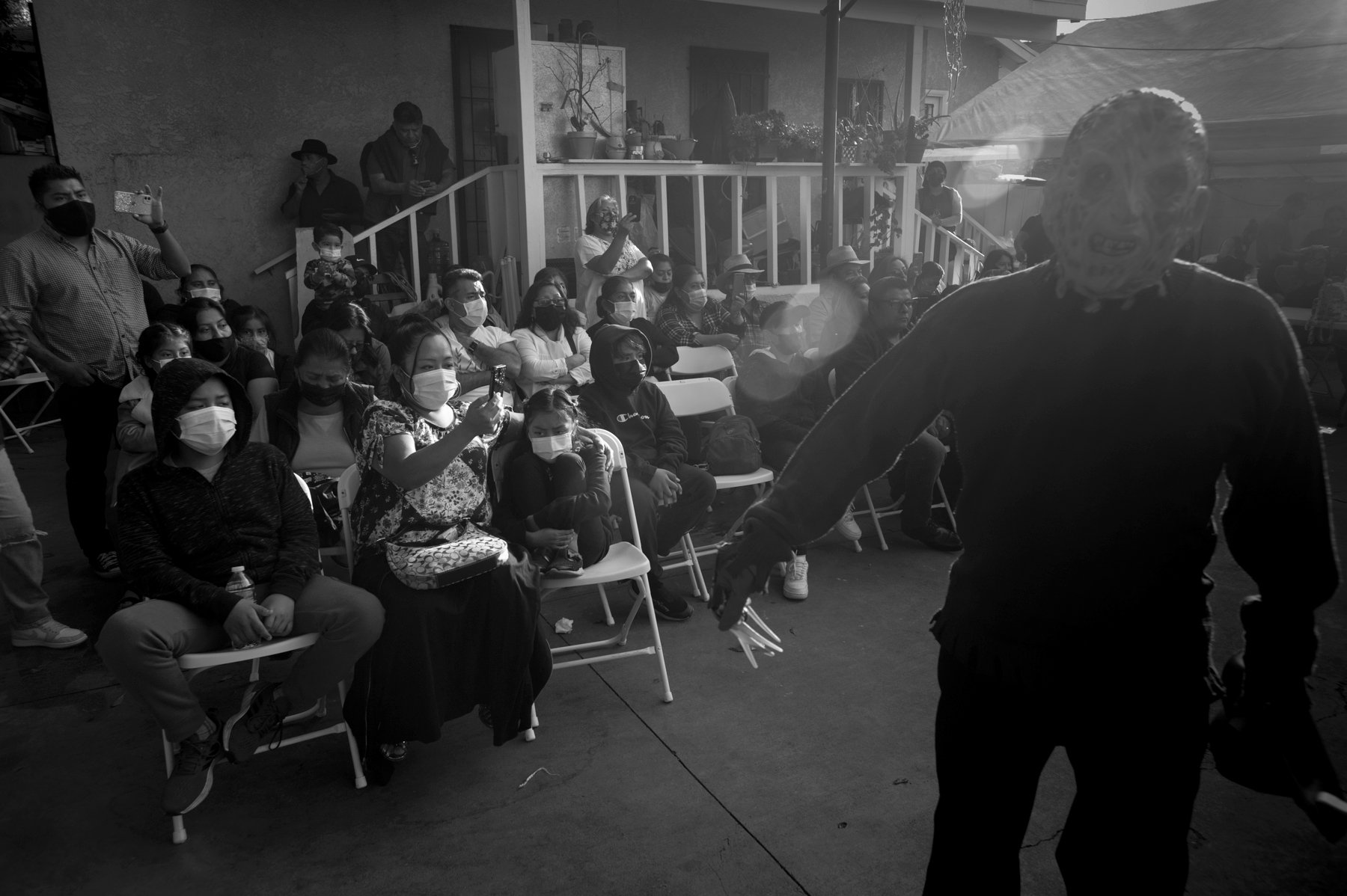 Familia Zapoteca arrives as Santa Claus at Chirstmas celebration in Los Angeles.